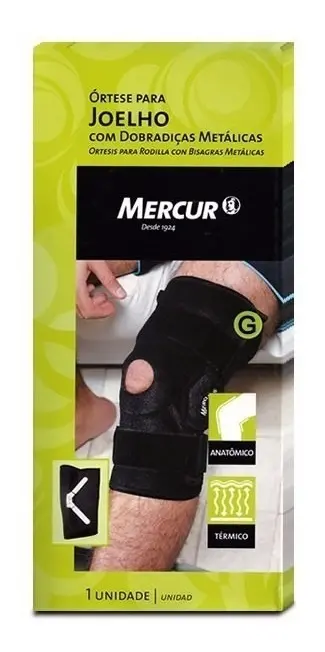 Possui suportes metálicos flexíveis para estabilização da região do joelho e orifício reforçado que centraliza a patela. O produto possui cintas ajustáveis através de fechos aderentes, proporcionando uma compressão adequada na região, e é confeccionado em Neoprene®, que retém o calor corporal, auxiliando na redução da dor e prevenção de lesões. Pode ser usada tanto no joelho direito quanto no esquerdo.